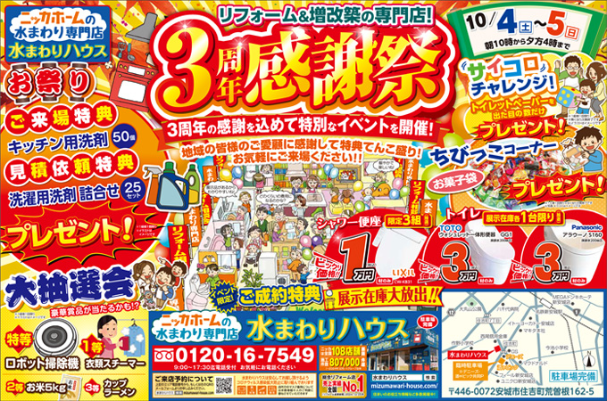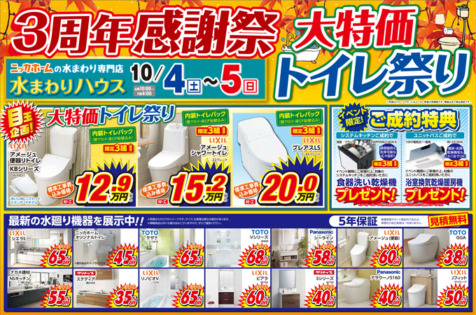 会場は水まわりハウスのショールームです。この機会に、ぜひお越しください!