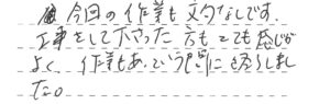 今回の作業も文句なしです。工事をして下さった方もとても感じがよく、作業もあっという間に終了しました。